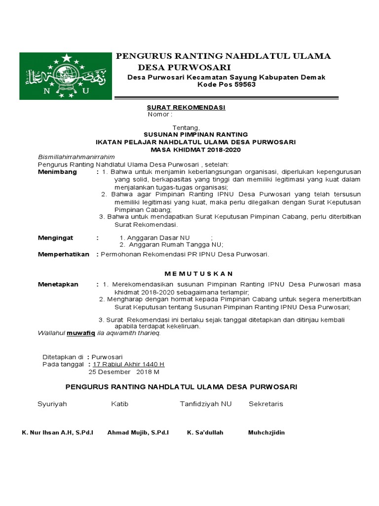 Contoh Surat Rekomendasi Nu : Contoh Surat Rekomendasi Mwc Nu 530 Koleksi Contoh Undangan Rapat Mwc Nu Gratis Contoh - Umumnya, digunakan untuk menambah nilai positif diri seseorang melalui penilaian atasan, kepala perusahaan, maupun dosen.